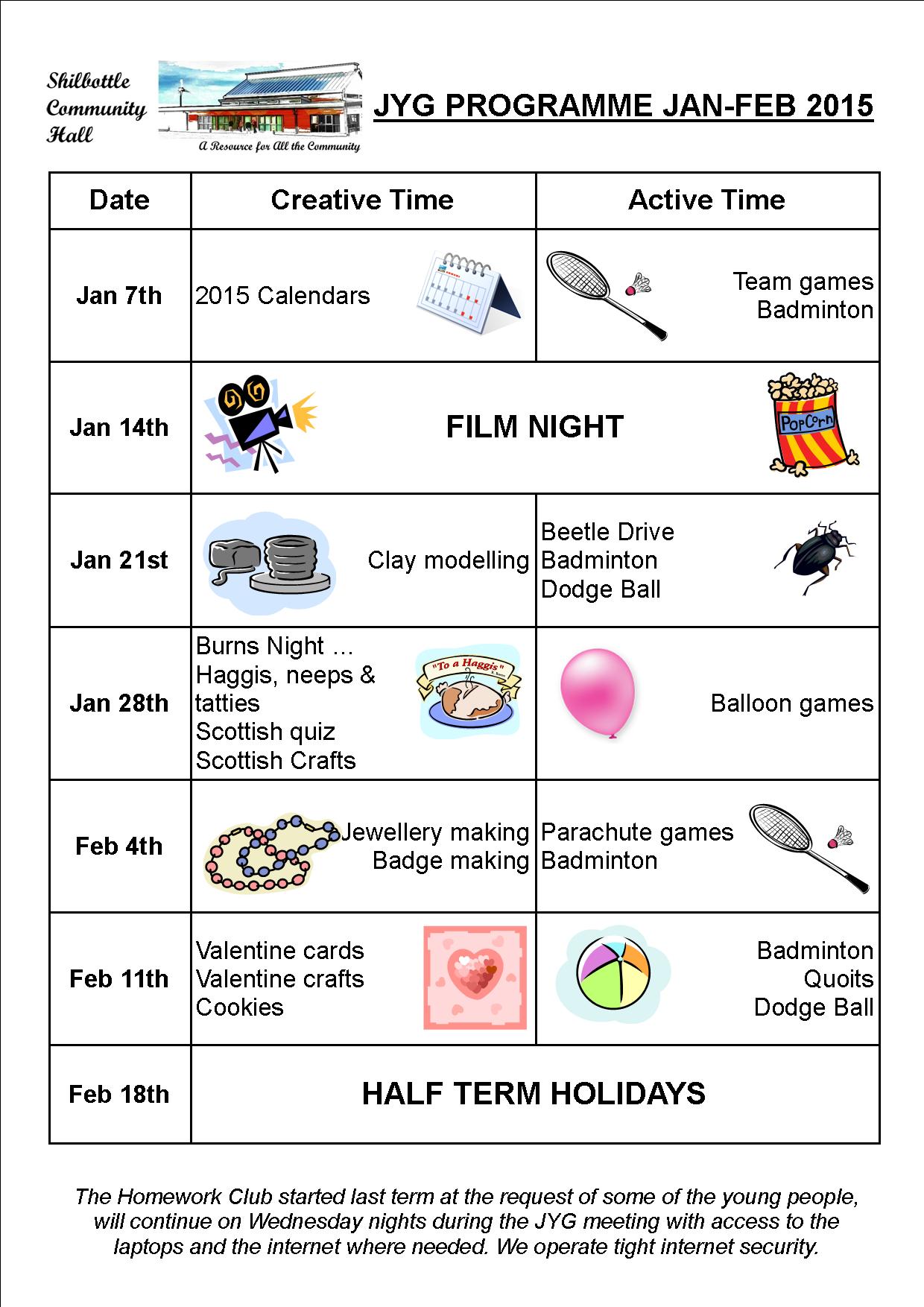 Junior Youth Club Programme Jan – Feb 2015