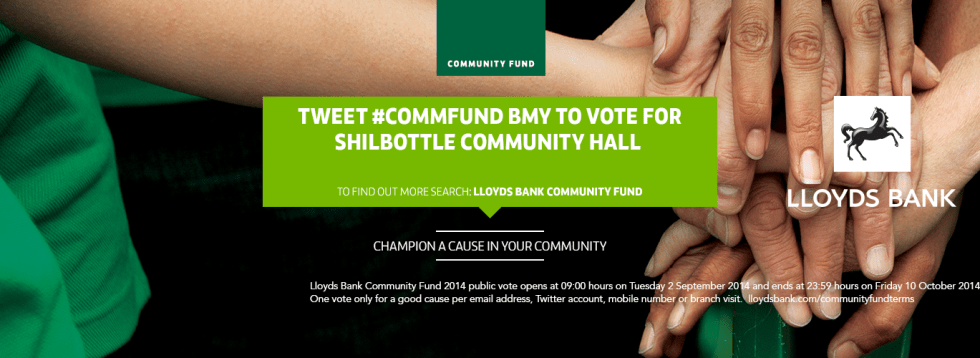 Thank you to everyone who voted for the Hall in the 2014 Community Fund Award public vote and to Alison Lowes who nominated us ~ WE WON!